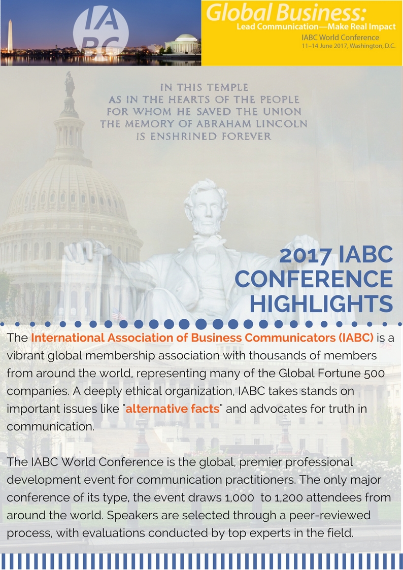 In June, I traveled to Washington, DC for my first International Association of Business Communicators (IABC) conference. I discovered the organization several years ago when they invited me to write an article for their flagship e-magazine, Communication World. An invitation to present gave me the opportunity to learn more about this energized, exciting organization. Here’s the inside scoop on what happened at the IABC DC World Conference.